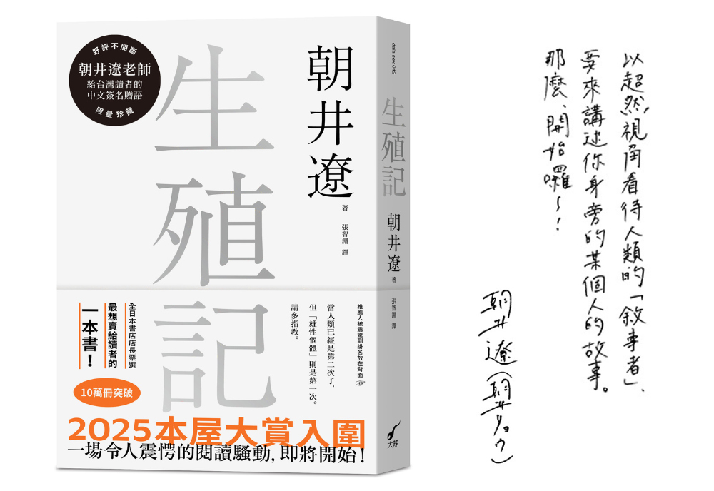 為了回應台灣讀者的支持,朝井老師特別為台灣親筆寫下兩句贈語。這段文字將收錄於《生殖記》好評再刷版的扉頁。大塊文化亦將推出限量 500 本的「簽名贈語版」,作為特別珍藏版本。