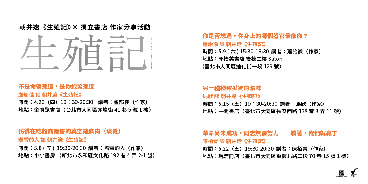 《生殖記》限量簽名贈語版 作家特別分享活動 合作獨立書店