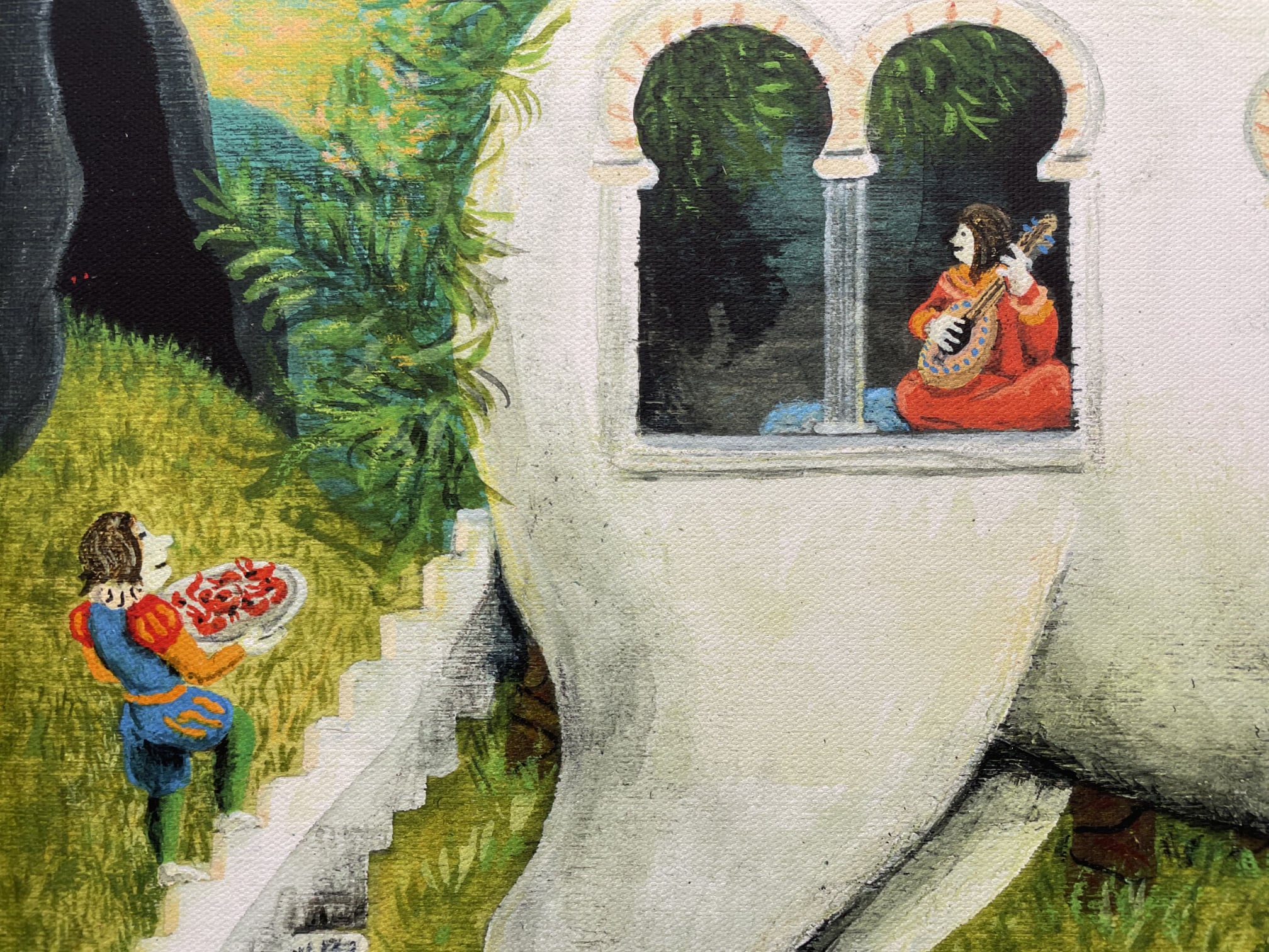 藝術家將一般耳熟能詳的童話故事中元素,如:迪士尼動畫中的城堡、公主、巨龍等,以羅馬式建築、阿爾罕布拉宮、瑪格莉塔公主、蛇代換,使其具有強烈西班牙色彩的文化氛圍。