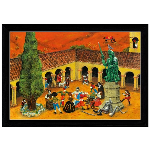 另外包含通俗文化的元素,像是:西班牙紙牌人像、青蛙遊戲,和節慶遊行中的巨人和大頭紙糊人偶。