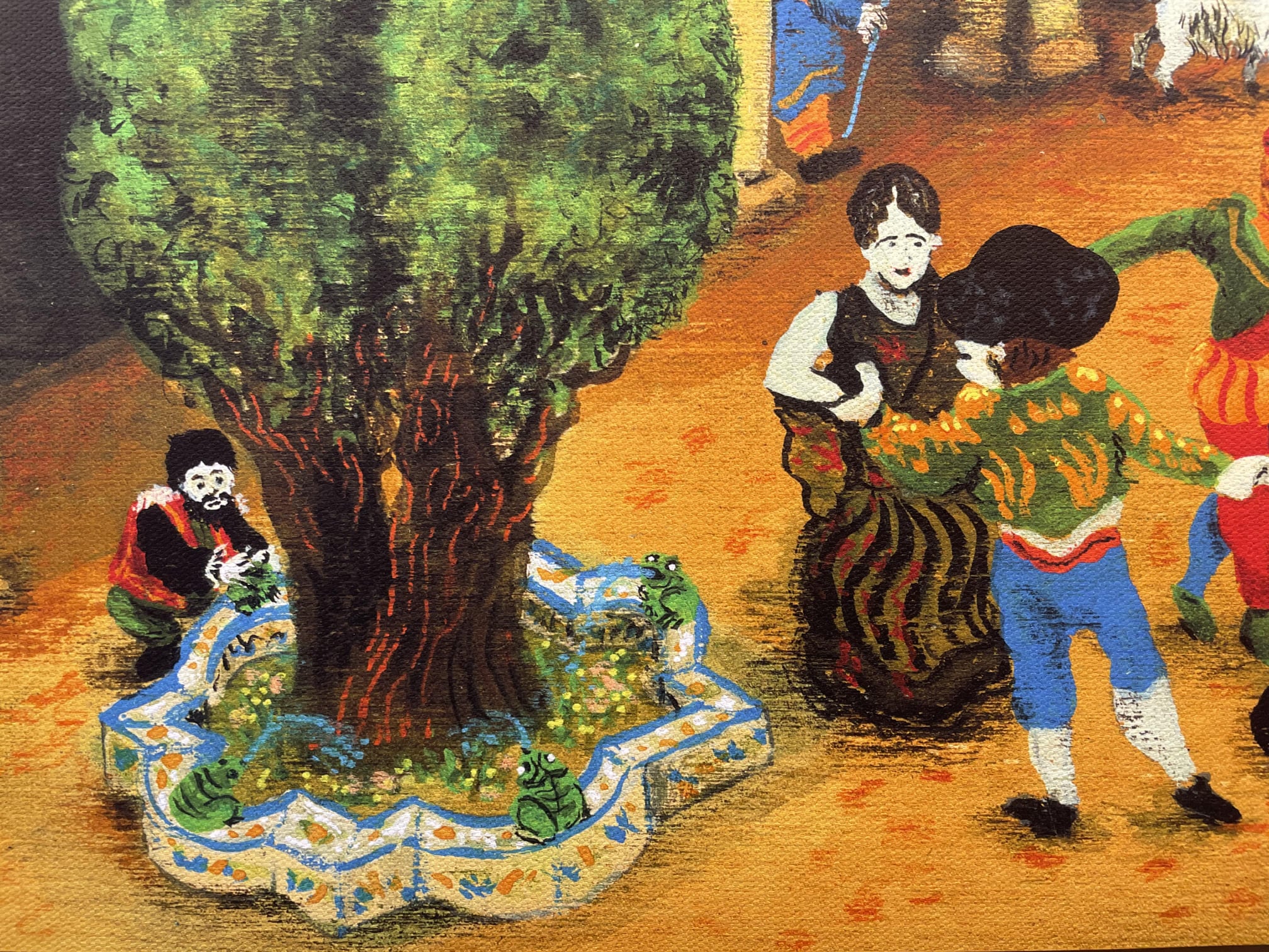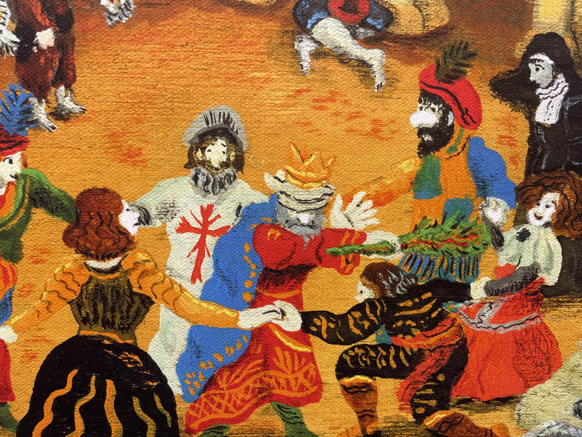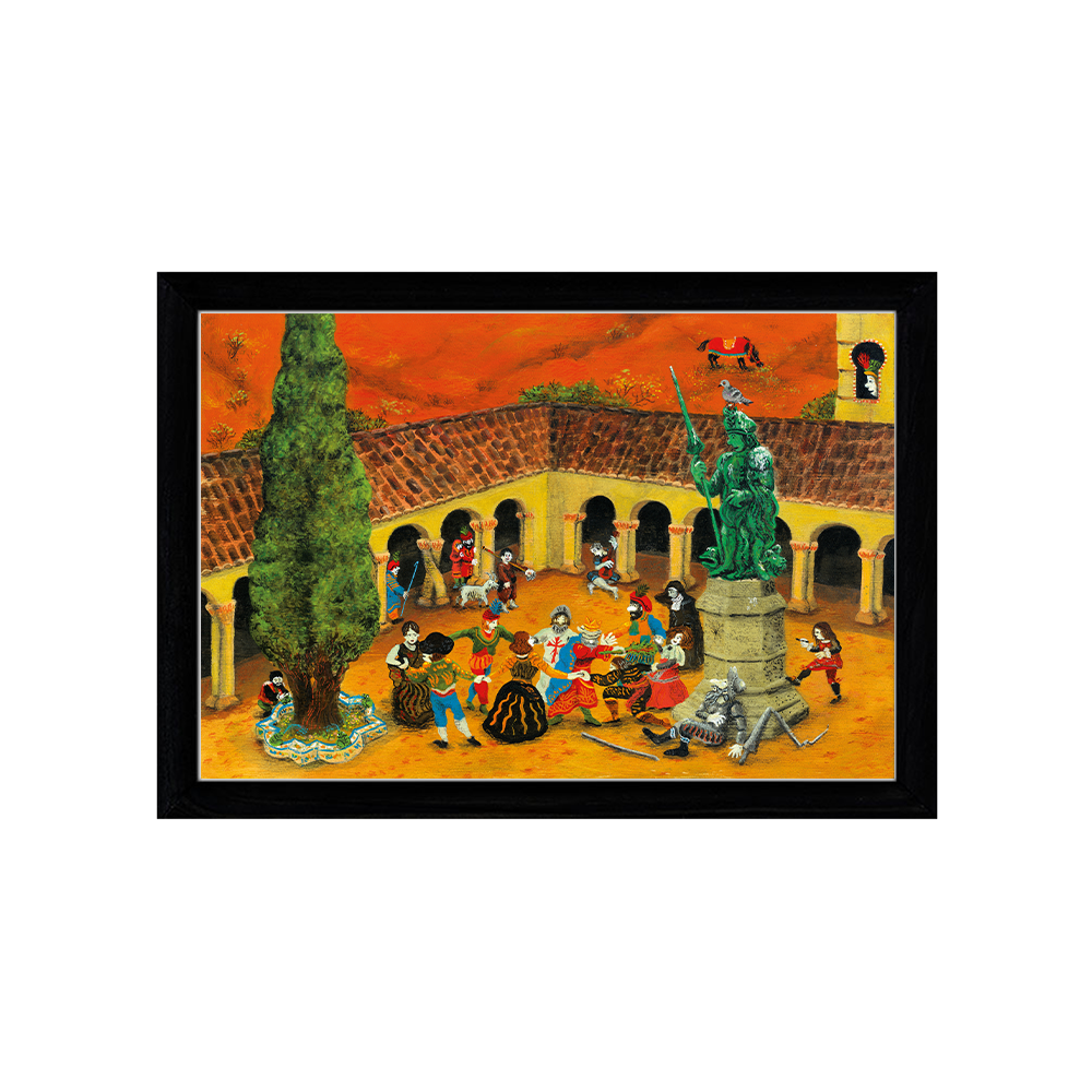 另外包含通俗文化的元素,像是:西班牙紙牌人像、青蛙遊戲,和節慶遊行中的巨人和大頭紙糊人偶。