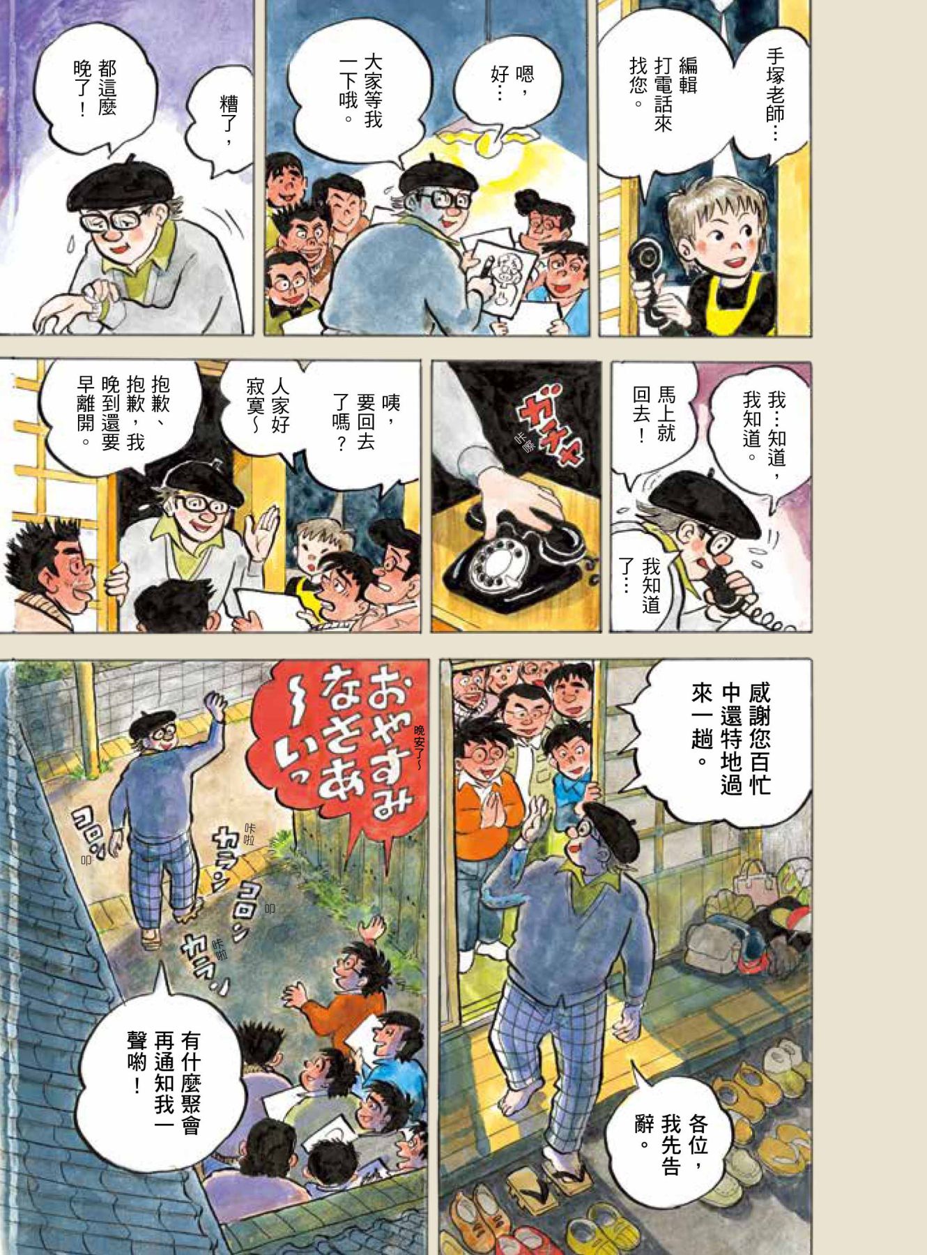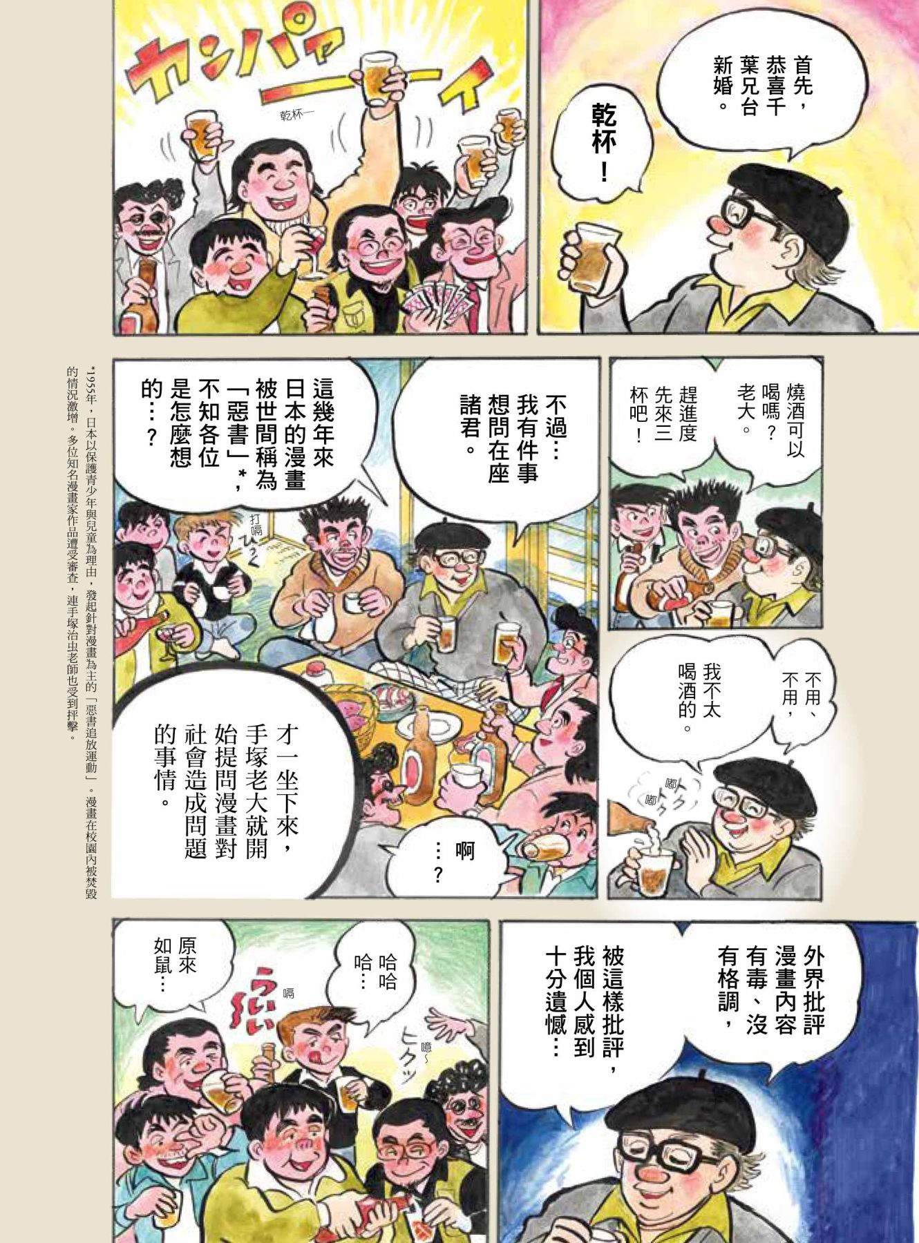 以漫畫迷的角度來說,當然對這故事很好奇,也覺得很有出版價值。千葉徹彌曾經擔任過日本漫畫家協會會長,在一群資深漫畫家圈中是很活躍的一員,所以這部自傳作品也時不時插入這群前輩漫畫家私下聚會交流的模樣,能順便窺探到其他作者的八卦也挺有趣的。