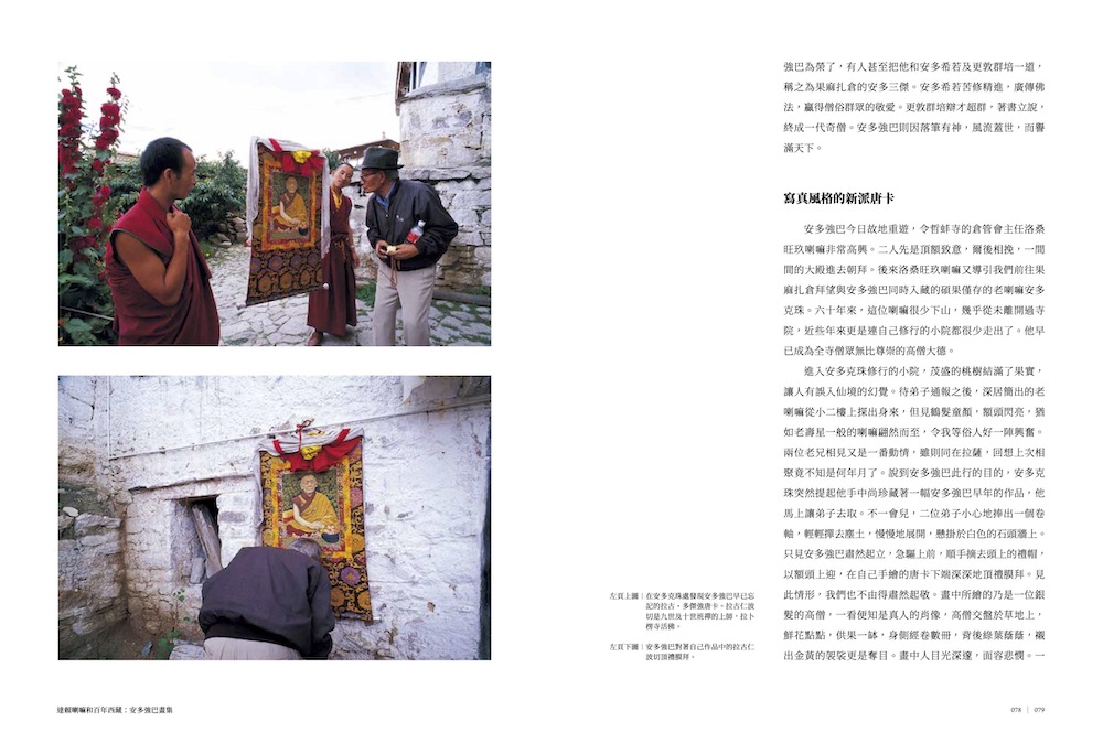 ● 收錄了近七十幅唐卡作品與七十多張照片。安多強巴的唐卡幾乎涵蓋了百年西藏所有重要宗教上師的肖像,以及西藏自吐蕃王朝以來重要的宗教、歷史人物與事件,繪出了西藏的歷史與文化