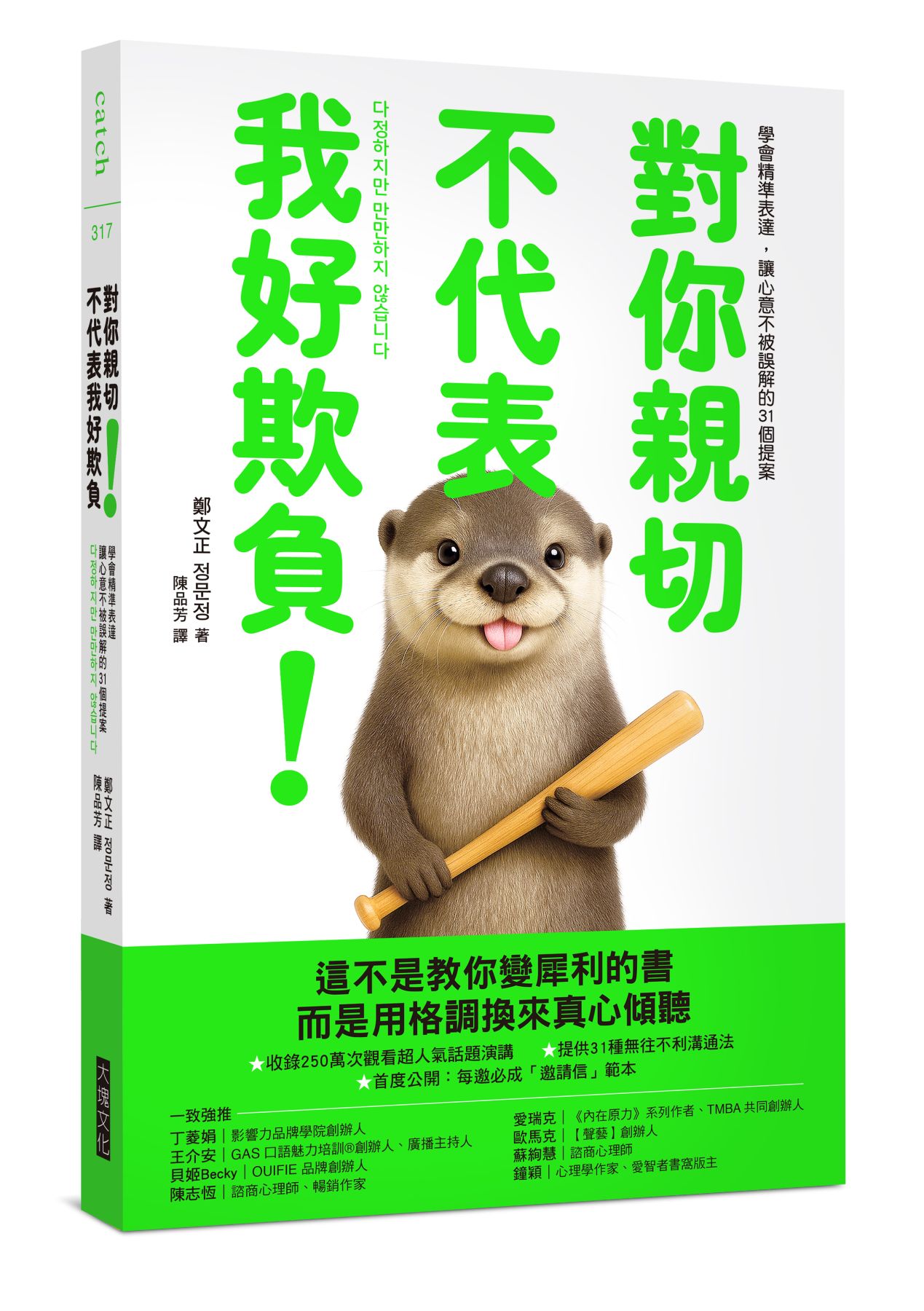 《對你親切,不代表我好欺負》這本書收錄的,正是我過去渴望聽到、且能提供實質幫助的話。我希望大家能夠理解我所強調的「言語」與「文字」之間的差異,並將這些觀念逐步實踐在日常生活中。我認為,作為一個成年人,最重要的責任,就是管理自己的心與語言。這兩者密不可分,只要能夠妥善掌控語言,也就能更好地掌控自己的心。