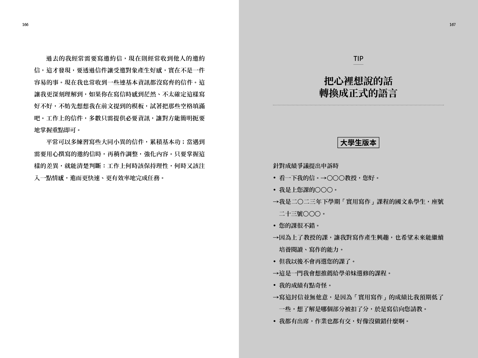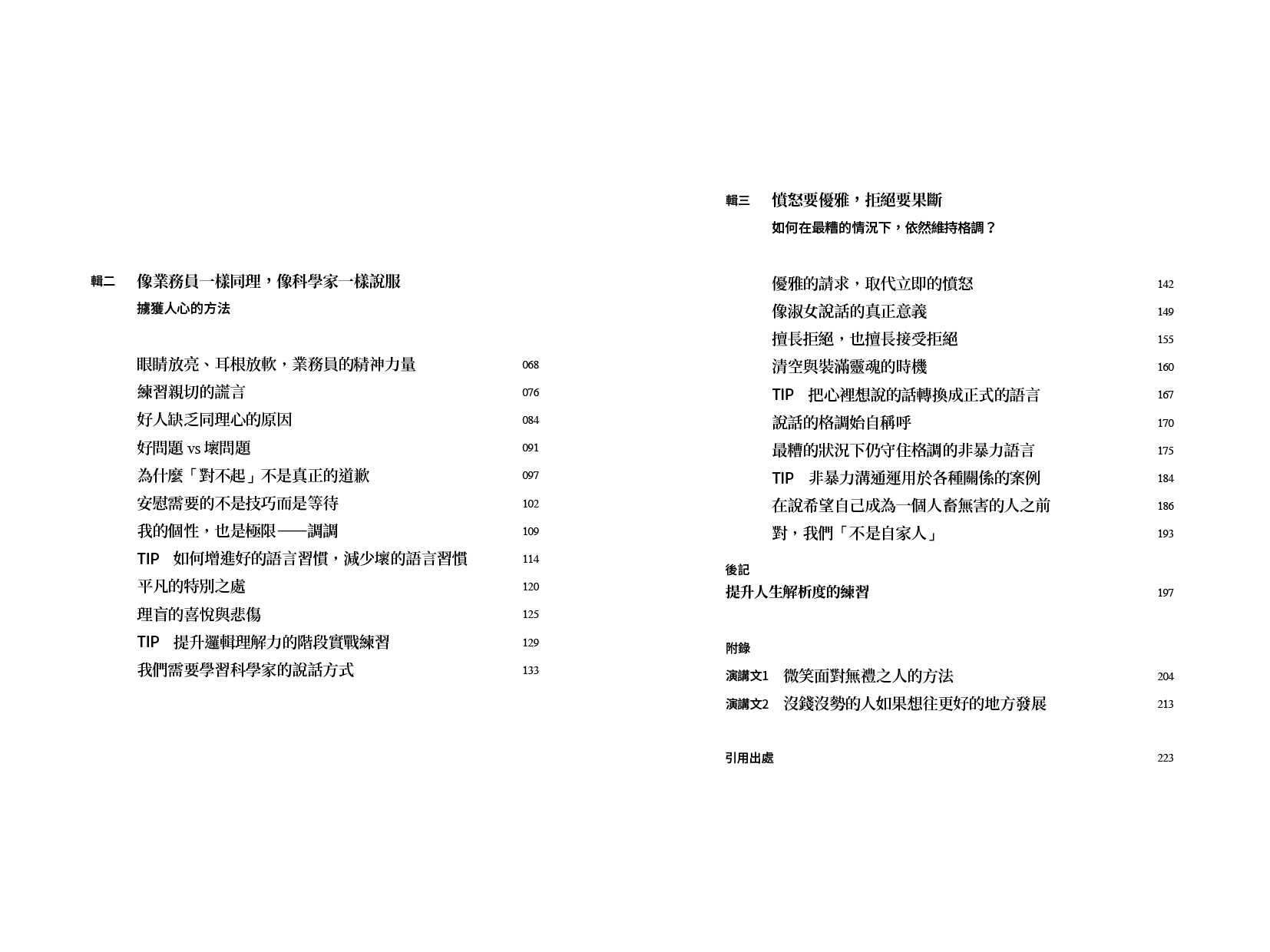 當憤怒、拒絕、歉意交錯而來時,剛好的語氣可以守住我們的自尊。有些場合,情緒不會自動消失。拒絕、歉意、憤怒常常彼此交錯,讓人難以分辨先後順序。因此,作者進一步解析:溝通的重點,不是控制情緒,而是運用適當的語氣,一起學會如何讓對方知道界線,也讓自己有退一步的空間的拿捏練習。