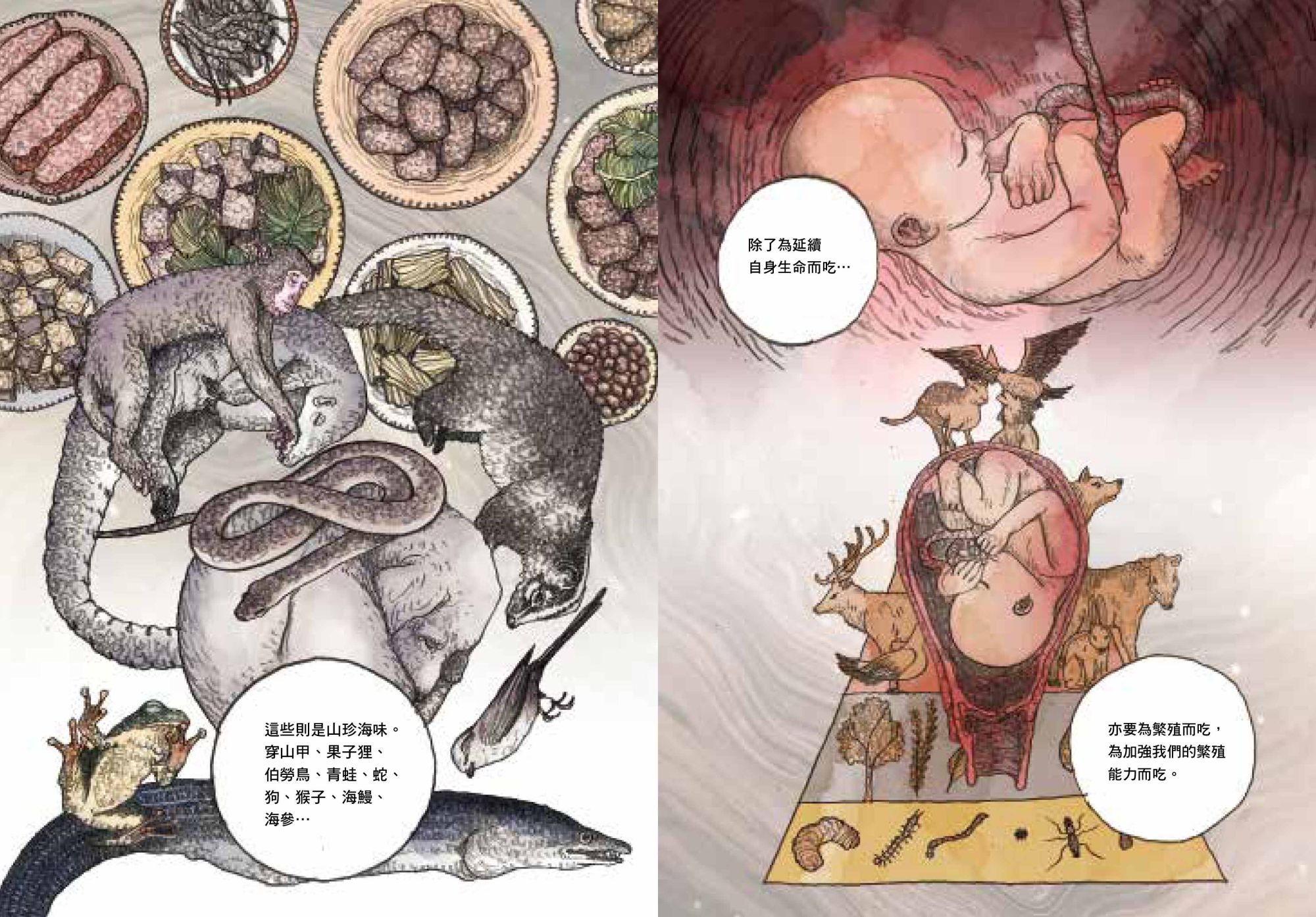 從穿山甲、果子狸、蛇、猴子、海參到虎鞭、鹿鞭,「食」的慾望與暴力並存。