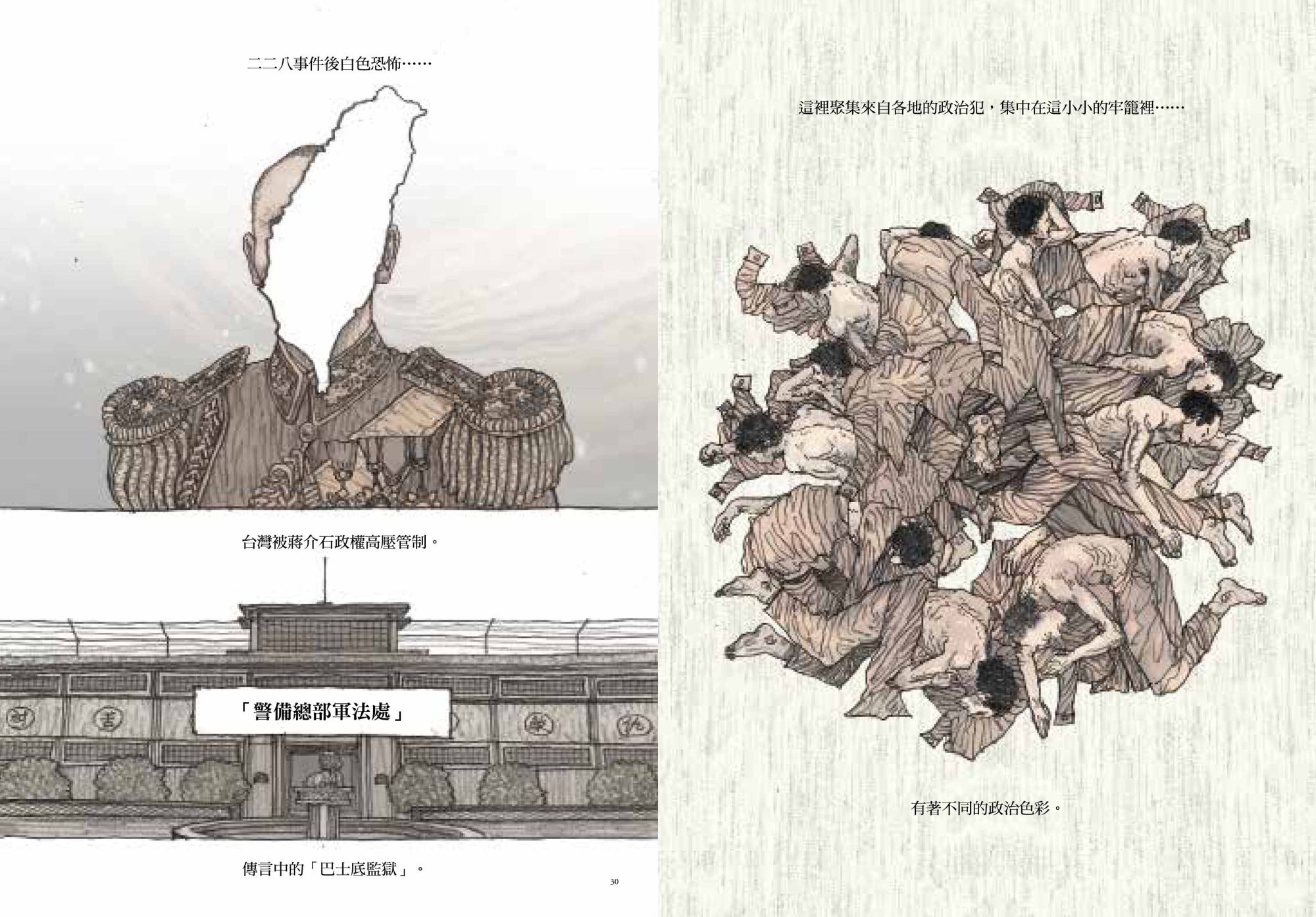 柳廣成再將它畫成為圖像的漫畫,安排政治犯關出來之後,虛構的情節,在此要明言: