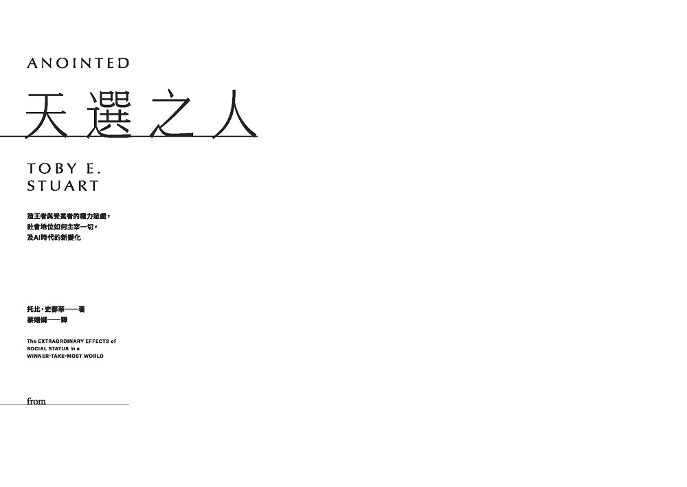 《天選之人》將透過商業、經濟、文學、藝術、時尚等多元領域的精彩案例,展示了地位如何在社會中層層擴散,創造贏家與輸家,但人類文明卻又離不開它;同時,新科技也為我們揭示了一個更公平未來的可能性。