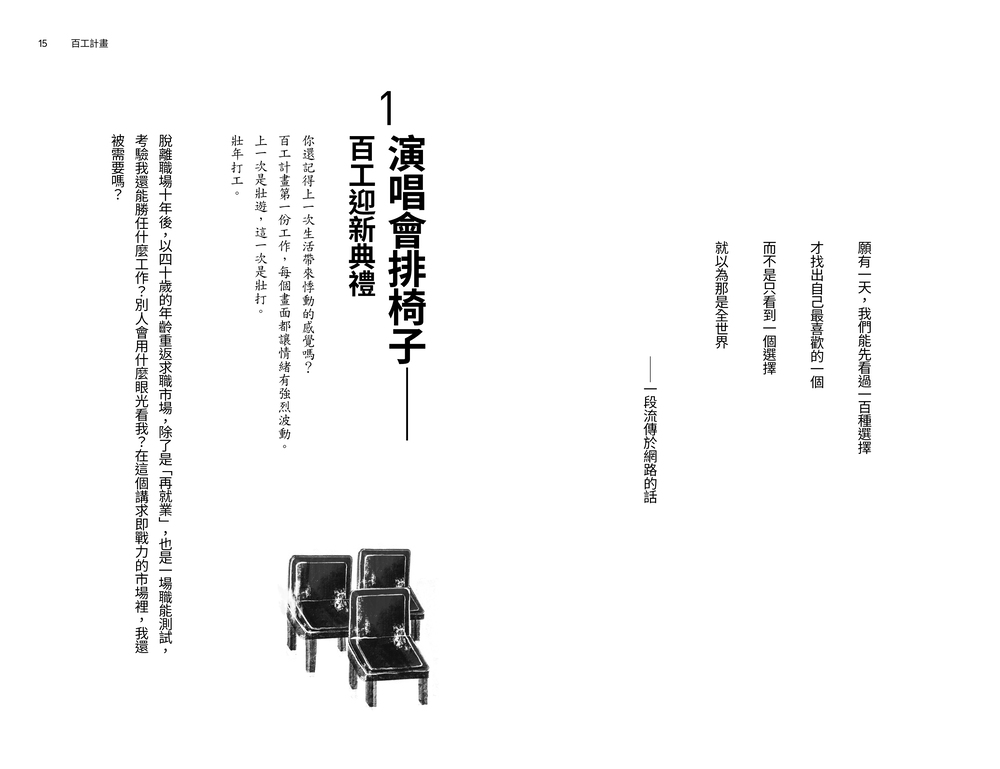 於是,我萌生一個瘋狂的念頭,不如來體驗一百種工作吧!不以升遷為目標、不為穩定為前提,而是以「體驗」與「感受」為核心,重新理解工作與生活的關係。