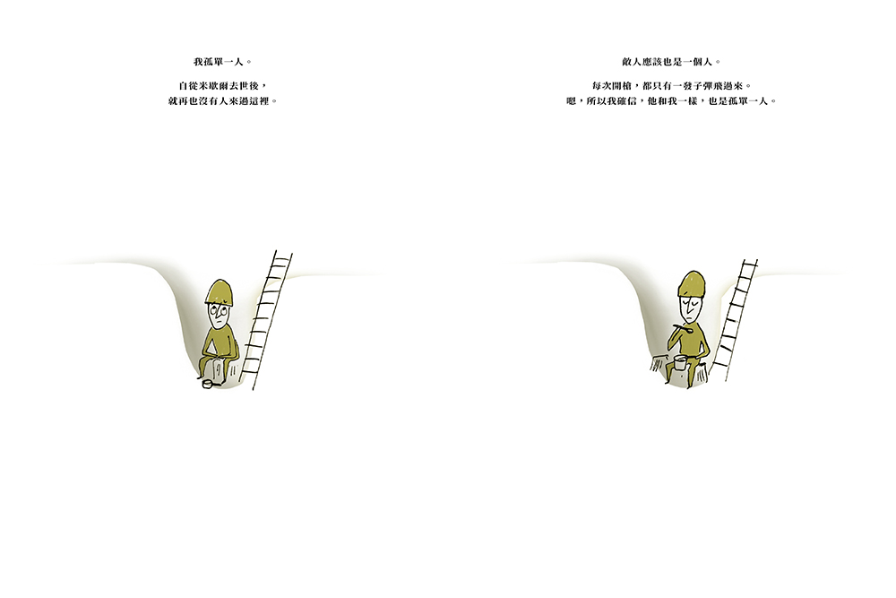 兩名孤獨的士兵在荒蕪的戰場上對峙,深信對方正如手冊所描述的那樣,是毫無人性的怪物。