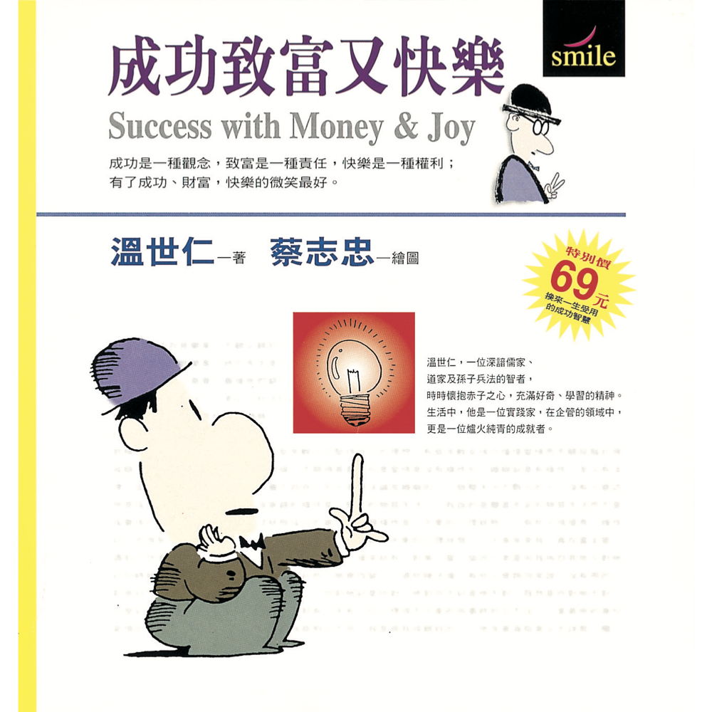 「當我們想征服一座山,就算我們真的征服了山,同時我們也等於被自己的慾望所征服,如此,徒增長慾望。如果我們去征服成功、征服財富、征服快樂,其實,還是被自己的慾望所征服,徒增長慾望。 我們不應該去征服山,而是去融入於山,於是山就變成我們自己。我們不該去征服成功、財富、快樂,而是去融入成功、財富、快樂。於是,就算我們只能得到一點點成功、財富、快樂,也成為我們自己的成功、自己的財富、自己的快樂,誰也奪不走。」 成功是一種觀念,致富是一種責任,快樂是一種權利;有了成功、財富,快樂的微笑最好。溫世仁和蔡志忠這兩位傳說中的高手,胸懷成功、財富、快樂三大武林秘笈前來、兩人聯手出招,教你如何擁有最好。溫世仁的文章見地獨到、舉例生動;為人謙和,又知人善任。由他來說「成功致富又快樂」,真是最好!