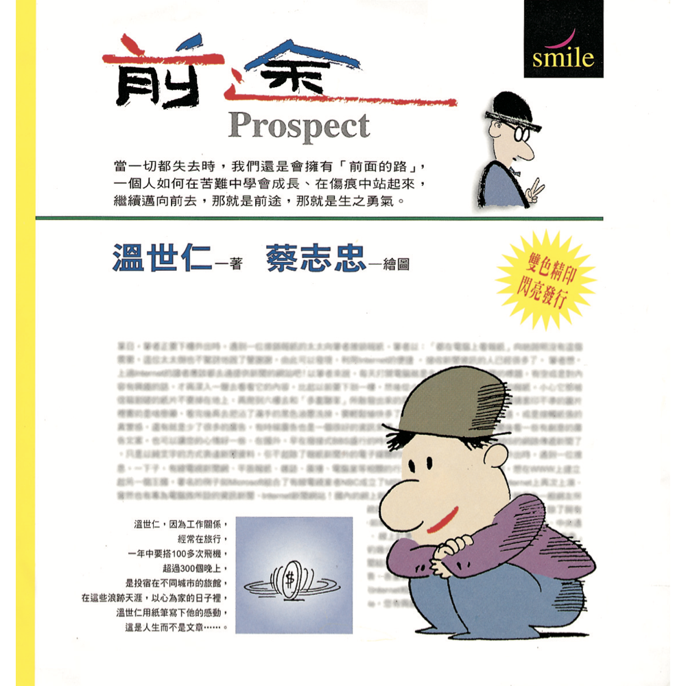溫世仁 蔡志忠 1948年2月2日生。1963年起開始畫連環漫畫,1971年任光啟社電視美術指導。1981年拍攝卡通作品《七彩老夫子》。1983年四格漫畫作品開始在台灣、香港、新加坡、馬來西亞、日本報章長期連載。1985年獲選為全台灣十大傑出青年。 1986年《莊子說》出版,蟬聯暢銷排行榜榜首達十個月。1987年出版《老子說》等經典漫畫,還有《西遊記38變》等四格漫畫,譯本更包括德、日、俄、法至今已達二十餘種語言。1993年口述自傳《蔡子說》出版。 1998年開始閉關鑽研物理和數學,並研究出從沒被物理學家發現的時間方程式,正籌備出書公布他的驚人發現。漫畫和物理之外,蔡志忠其他愛好還包括打橋牌,並奪得上百座橋牌賽獎盃;另外還收集佛像達3200尊。 著作:《大醉俠》、《肥龍過江》、《光頭神探》、《自然的簫聲──莊子說》、《智者的低語──老子說》、《御風而行的哲思──列子說》、《仁者的叮嚀──孔子說》、《尊者的棒喝──襌說》、《曹溪的佛唱──六祖壇經》、《博大的學問──大學》、《六朝的清談──世說新語》、《大學》、《中庸》、《論語》、《史記》、《菜根譚》、《花間的細訴──宋詞說》、《千古的絕唱──唐詩三百首》、《漫畫心經》、《圖像英文記憶法》、《非常壞》等等。