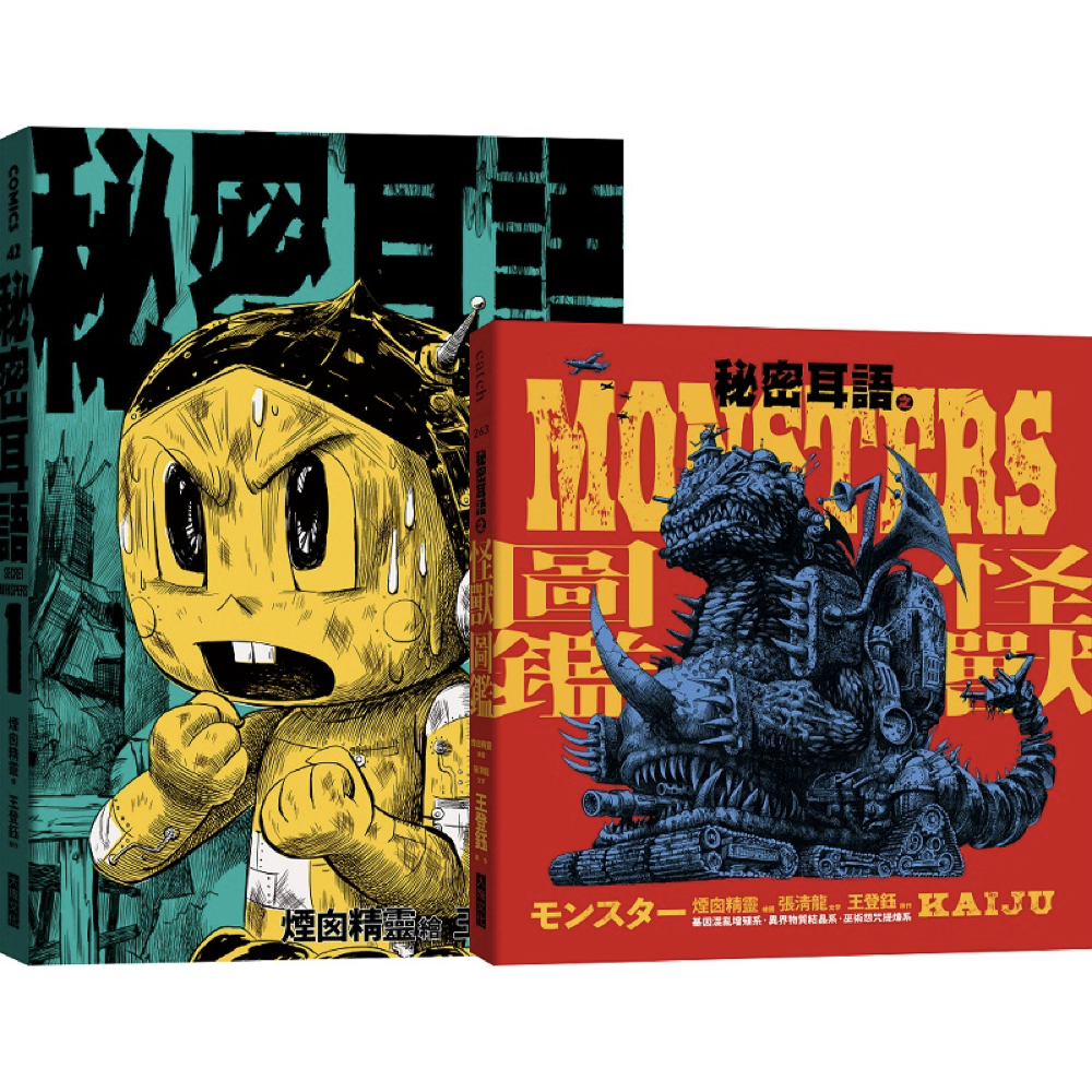 此次同步出版從故事衍伸而出的《秘密耳語之怪獸圖鑑》,收錄了《秘密耳語》系列漫畫裡的各種「怪獸」(Kaiju),分為「基因混亂增殖系」、「異界物質結晶系」和「巫術咒怨提煉系」三大類別,完全不輸日本特攝片的精細畫稿、震撼力十足,再委由資深動漫專家張清龍根據怪獸樣貌編寫系譜和發人深省的設定,共80隻怪獸,建構出一個完整的怪獸星球生態系和物種,值得收藏。