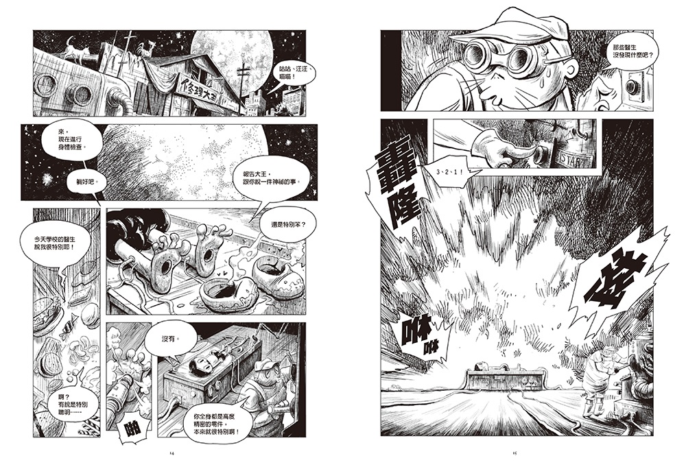 即使未看漫畫,閱讀本書一樣充滿畫面的驚喜和滿足,以及新世界的奇想和奇趣。 《環太平洋》中的巨大機器人和怪獸是導演吉勒摩・戴托羅對日本特攝片的致敬,王登鈺《秘密耳語》團隊筆下的怪獸,精神也是承繼日系怪獸,但完全長出了屬於自己的樣子和魅力,完全不輸日本特攝片的精細畫稿、震撼力十足。