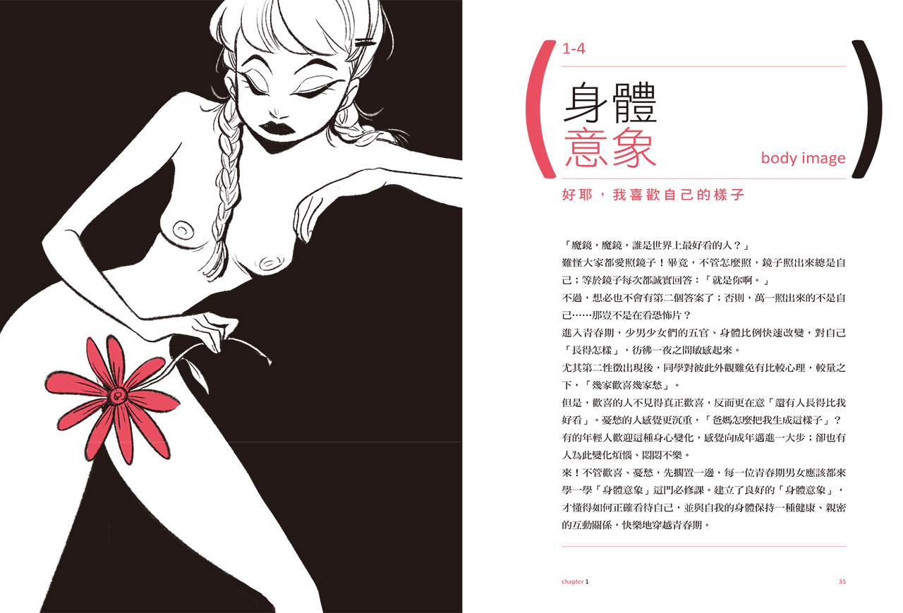 本書邀請水晶孔、筆頭、蔣文欣三位年輕世代女圖像創作者的角度詮釋,以插畫、漫畫形式,描繪細緻的身體器官意象,完美圖文結合,讓青少年輕鬆的跨步,在青春時期打下性教育的好基礎,等於預約了一生的健康幸福。