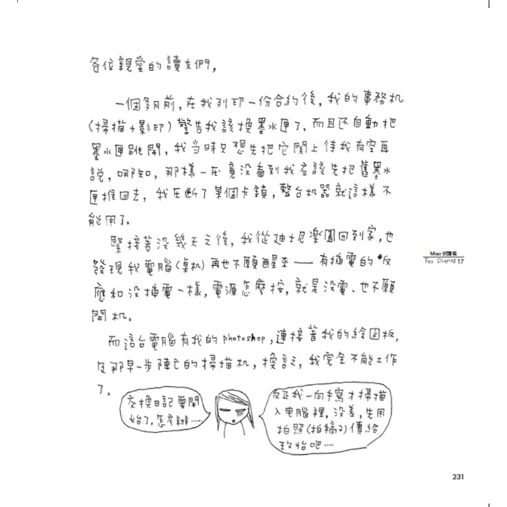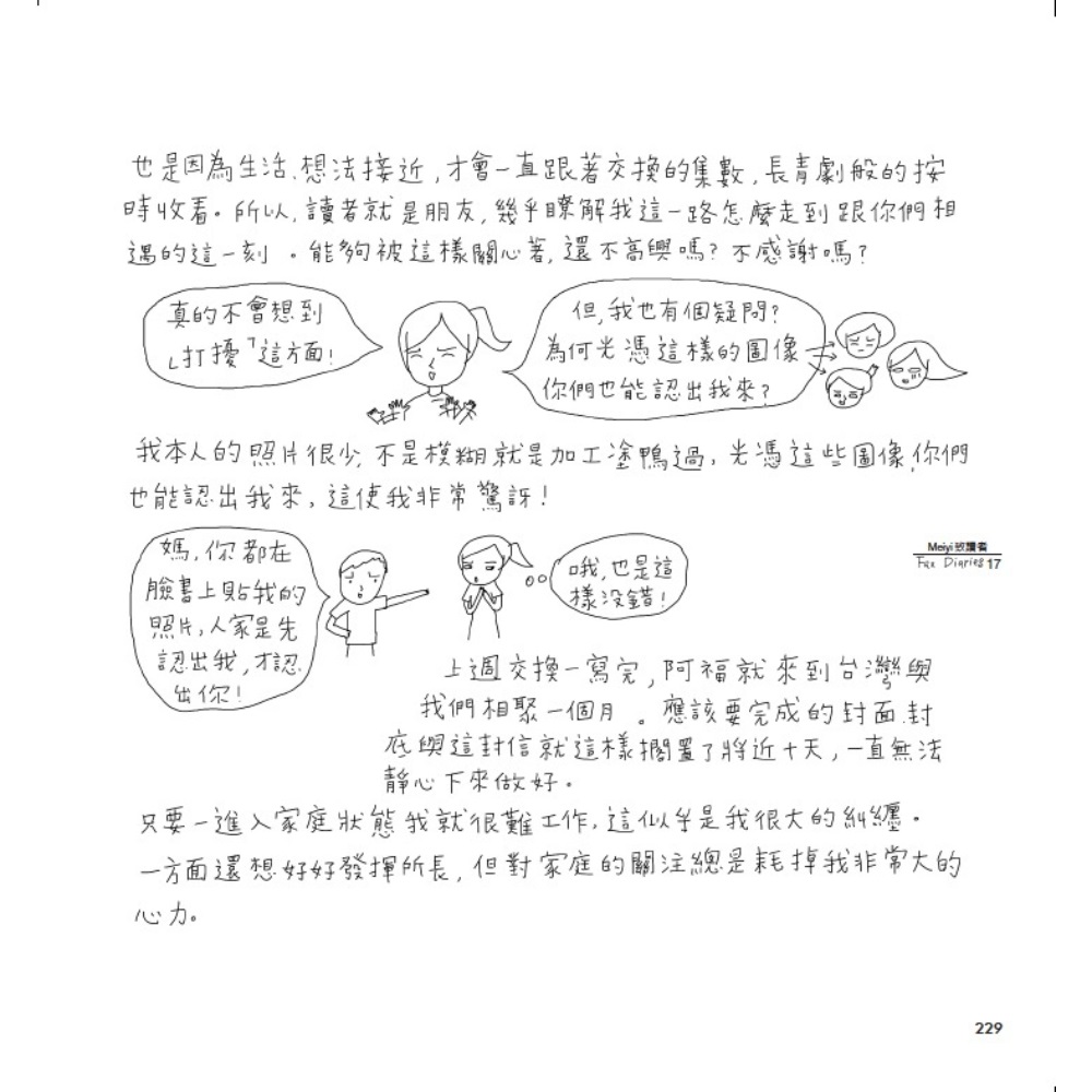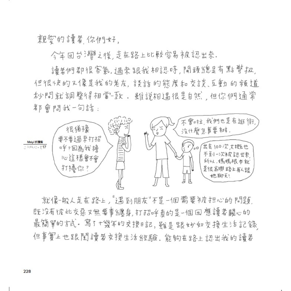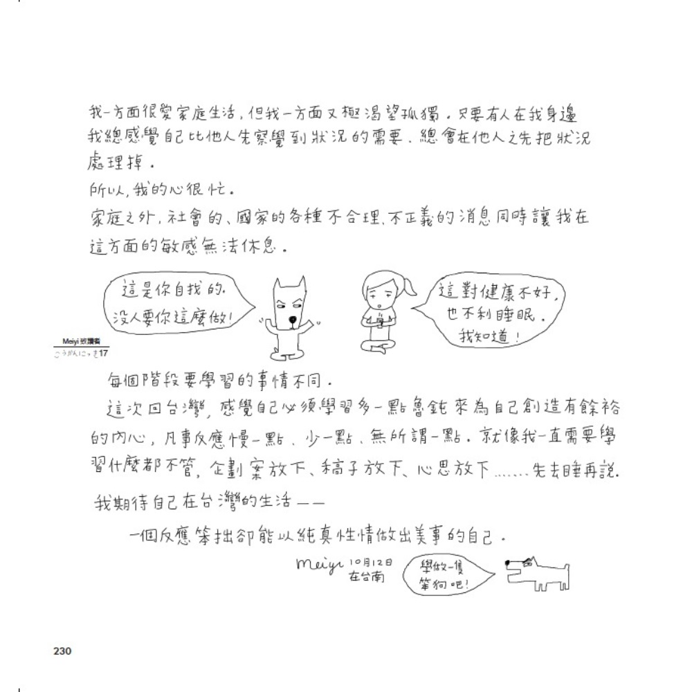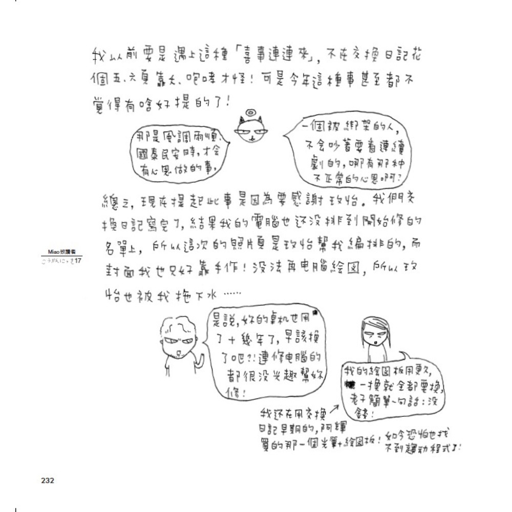 畢竟凡事有因必有果,一切都是自己選擇之下的結果,今年也躍昇為人生導師,事務機壞掉?電腦壞掉?繪圖板壞掉?這些都不算什麼啦! 雖然生命中的高高低低在所難免,但兩位主婦對自己所追求的人生一點都不曾妥協,每年看著《交換日記》都像是和老友重聚一般,今年也一起加油吧!