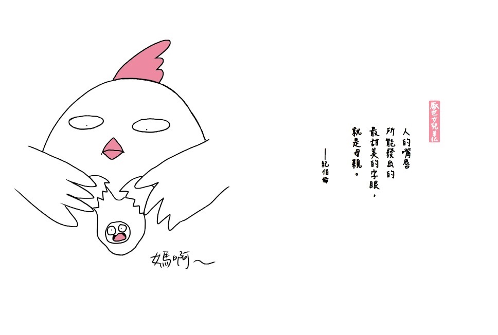 我一直很好奇厭世姬是怎樣養成的,以前看她作品,幾筆畫幾個字就能強烈描出人心裡那個點,以廣告操作的說法,就是很有INSIGHT,總猜著要嘛她很聰明,要嘛她經歷很多。現在我知道了,她不只聰明,而且經歷很多,也許,太多。讓人想打從心裡給她一個擁抱,不過,她其實已經先一步,先給世界一個大擁抱了。