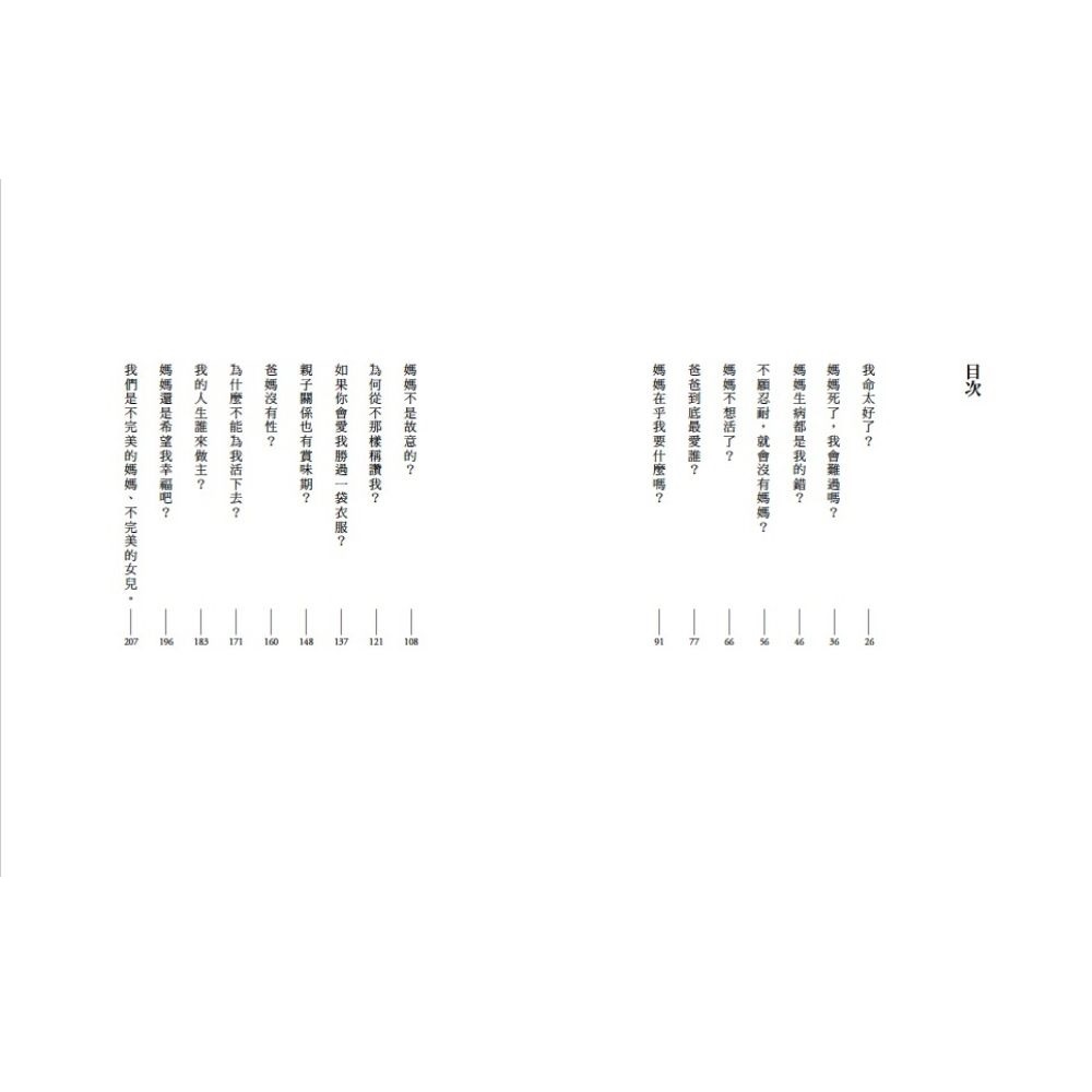 而她這個人的複雜也構成了圖文創作裡的迷人特質,幽默,犀利,無畏且自由,對人類怨憤,但其實還沒有絕望。她是這樣好的一個人,這樣好的一個創作者,即便如此,這本書仍舊從一個巨大的自厭出發:我夠格當一個創作者了嗎?再往下讀,你會知道,她其實問的是:我夠格當我媽媽的女兒了嗎?