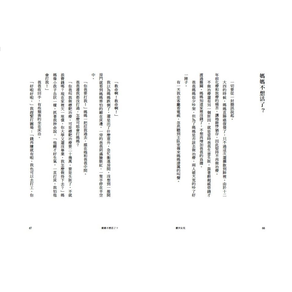 厭世姬這書寫得誠實無比,把和父、母親的愛怨都清楚地用故事刻畫,我讀的時候,只是一直捏,捏自己的腿,也捏自己的心。為過往遭遇中的她捏一把冷汗,也為她流一把清淚,實在太不容易,太掏心肺,簡直是種慷慨。