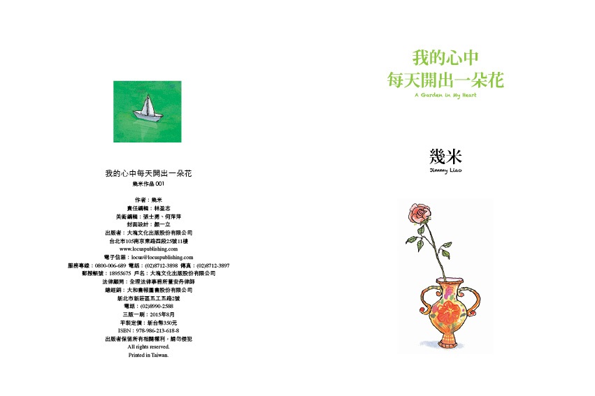 在《我的心中每天開出一朵花》發行突破二十萬冊之際,幾米重新繪製了封面,也同時出版平裝版與精裝版,彌補多年來這本書只有平裝版的小遺憾。回看這本多年前的作品,發現內容仍舊和社會脈動連結得上,讓人有股正在經手經典作品的欣慰感。而最有趣的是,仔細端詳幾米重新繪製的封面,看著一個功力更增十多年的創作者,回過頭去模仿當年的筆法以求作品內外調和,但又在其中展現這些年來自我精進的成果,非常令人讚嘆。