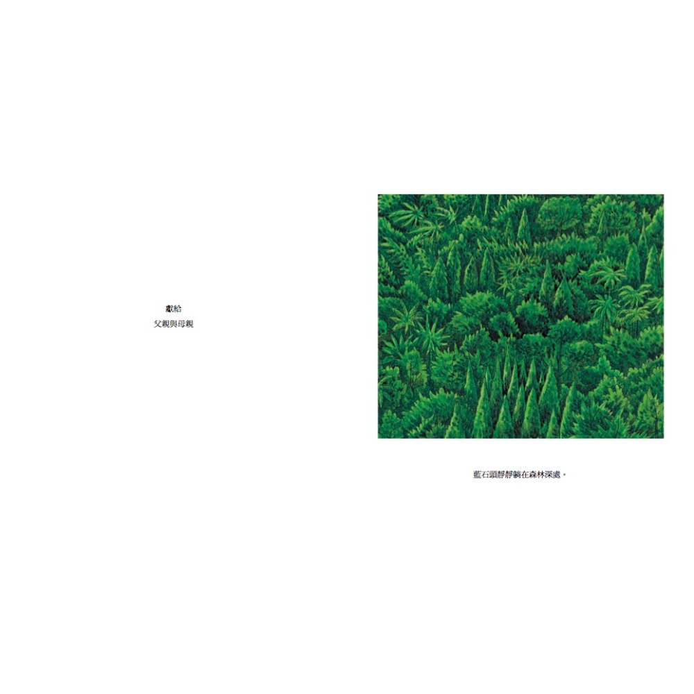 藍石頭靜靜躺在森林深處,度過了一萬年之久。它以為它會永遠待在這裡,直到地老天荒。但是,一場漫天大火燒毀了森林,美麗的藍石頭被撞裂成兩半,一半留在森林裡,另一半卻被運往城市……