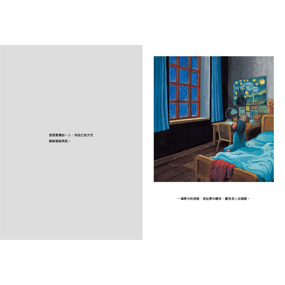 故事主角的問題、掙扎和解決問題的方式,如實表現出青少年少女與家庭之間依賴與出走的雙重關係。 書中有類似英國繪本大師安東尼.布朗慣用的超現實主義手法,以暗藏驚奇並富雙關意義的圖像,將日常物品變成暗喻的符號:同時援引如歐姬芙、馬格利特、孟克以及最明顯的梵谷等西洋藝術名家,一起為角色發聲。色彩較以往更為濃烈厚重,彷彿在失語的青春體內卻有最豐沛飽滿的生命能量,無論如何仍要奮力一搏。