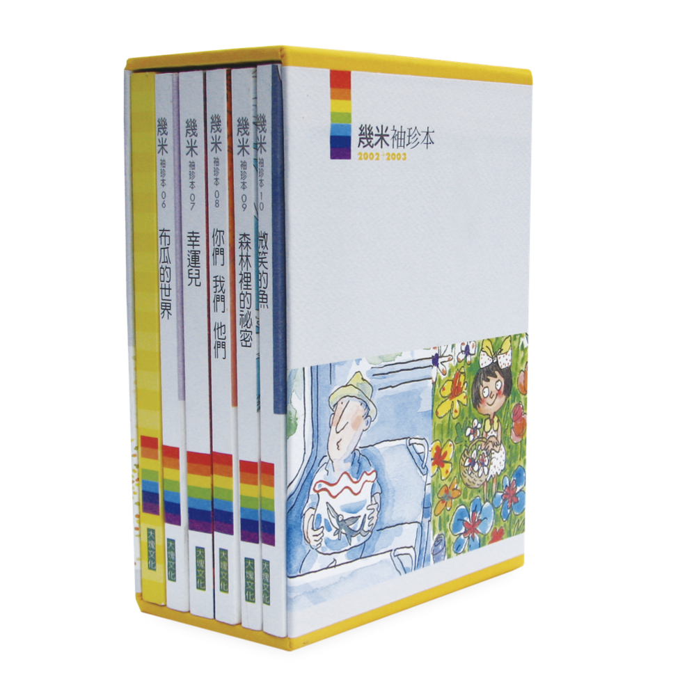 袖珍版本。小巧的開本,加上精緻的盒裝,對於忠實的幾米書迷來說,這套袖珍本是一項等待已久的「驚喜」,既可供珍藏,也是送禮時的最佳選項。