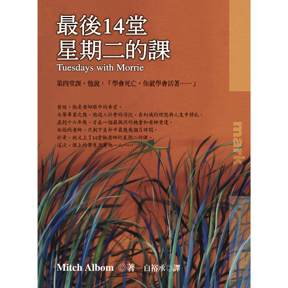 本書作者在昔日恩師生命的最後幾個月,每個星期二到老師家探望他。這位誨人不倦的老師,墨瑞‧史瓦茲,面對著死亡一步步逼近,不僅自己勇敢面對,窮究其多面的意義,更藉著與學生米奇的談話,一點一點柔軟了米奇因為世故而僵硬的心,讓他重新看待生活。